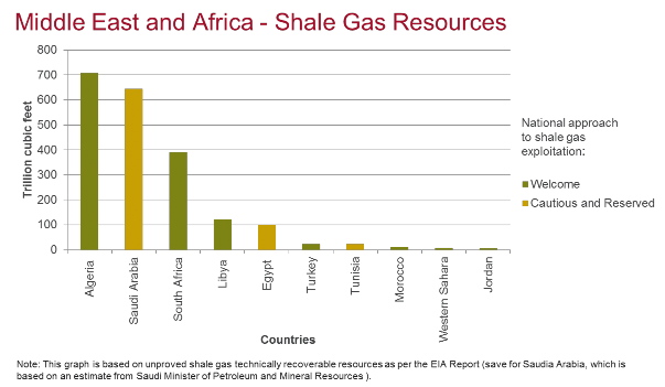 As displayed on the map below, in Africa and the Middle East, countries have either decided to welcome shale gas exploration or to take a cautious and reserved approach. There is currently no ban on, or outright opposition to, the exploration for shale gas in Africa and the Middle East regions. It is also worth noting that the region has significant shale oil reserves, notably in Libya, Algeria, Tunisia and Jordan and that governments and regulators in these jurisdictions have displayed a willingness to allow the exploration of these resources.