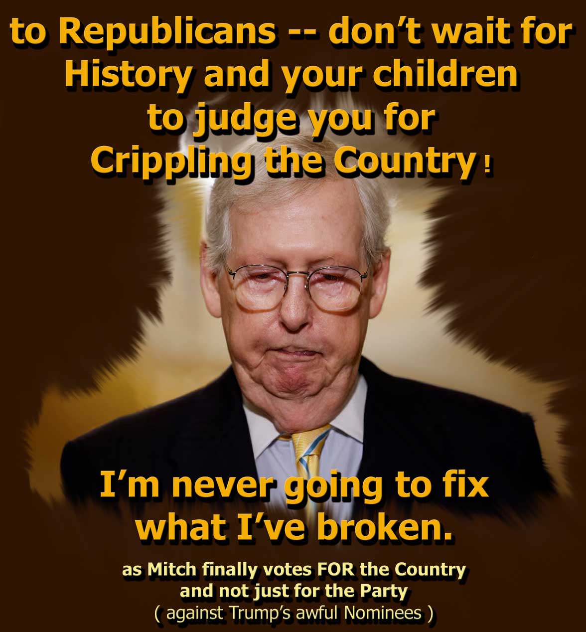G. Trump passes a law that makes it illegal to criticise him. ( moderates B. C.)